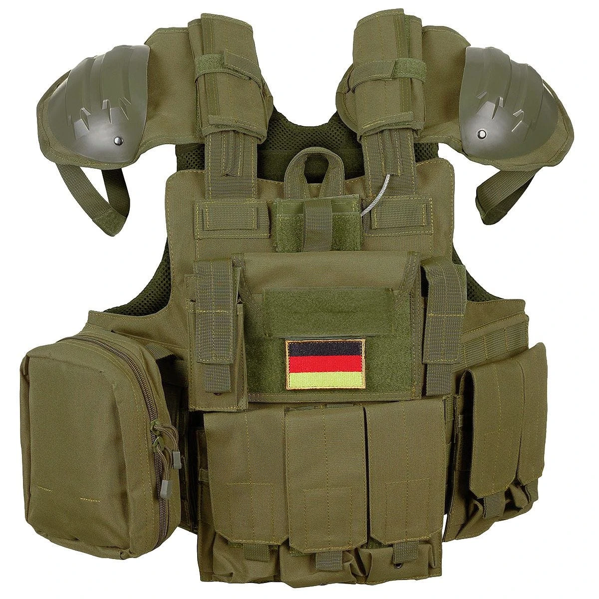 The Combat Vest from MFH is a robust and highly customizable tactical vest with several pockets and pouches of different sizes. The vest is highly customizable as it takes advantage of the MOLLE system that allows for the addition, removal and swapping of the various pouches on the vest. With the enormous amount of MOLLE loops on the vest, the desired configuration can be easily achieved. The vest is notably equipped with a quick-release system that allows rapid removal from the wearer. The vest features detachable and adjustable shoulder pads with a polyethylene shell. The vest comes ready with several pouches, two single ammo pouches, one double ammo pouch and one triple pouch with hook-and-loop flap closures. One large utility pouch with a two-way zipper and glove-friendly pull strings as well as internal loops. It also comes with one radio pouch. The vest contains a hook-and-loop compartment on the front and back for protective plates (not included). The vest is one size fits most, and it has a hook-and-loop adjustable waistband.