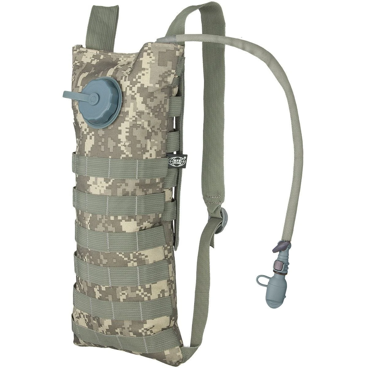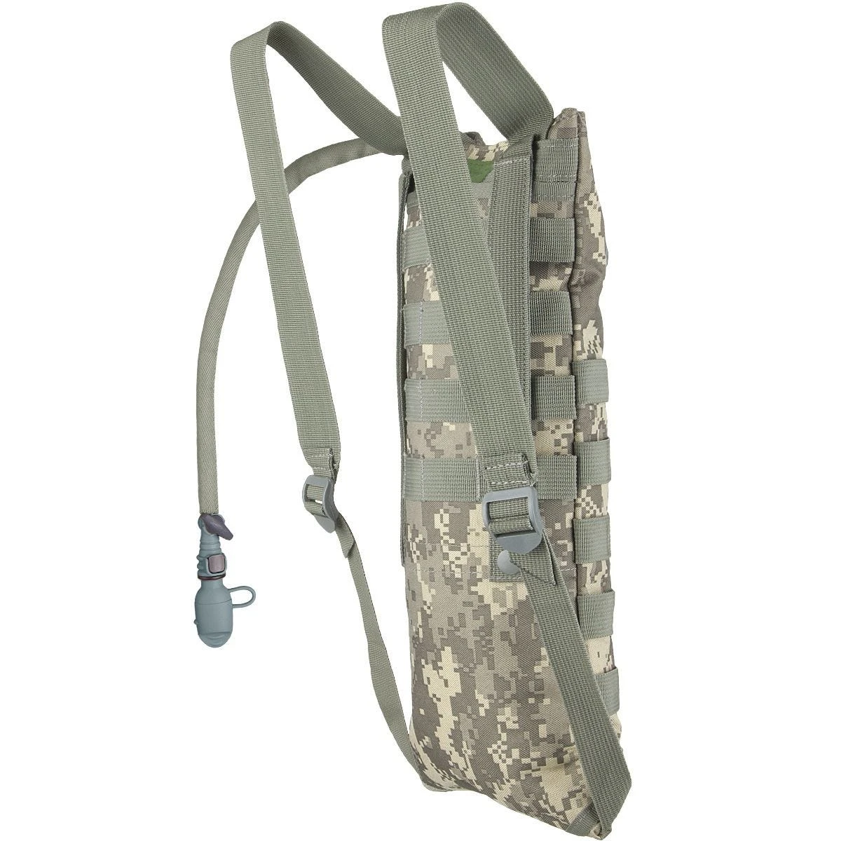 Presented hydration bladder is one of core components of MOLLE system, the one to replace the 1qt and 2qt canteens for on-the-go hydration, also equipped with PALS webbing for attaching extra pouches if needed. Its MOLLE construction allows creating modular connections with similar modular vests or rucksacks as a reservoir yet its adjustable in length shoulder straps enabling wear it as a normal backpack. This durable carrier is leak proof and taste free and comes complete with backrest with storage pocket, hydration system equipped with a convenient On/Off valve as well as hygienic interchangeable mouthpiece and cap.
