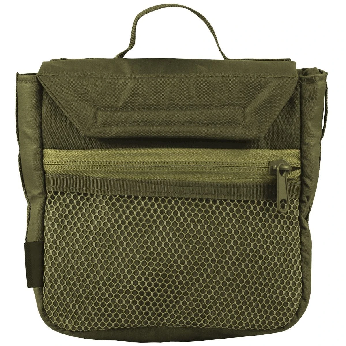 hook-and-loop surface at the back of the pocket, external fixation loops